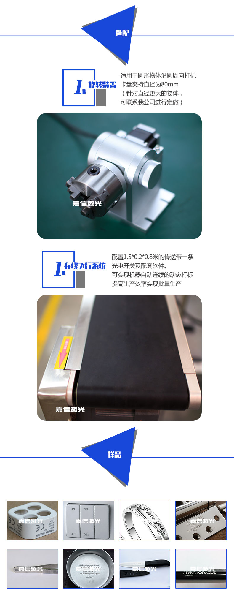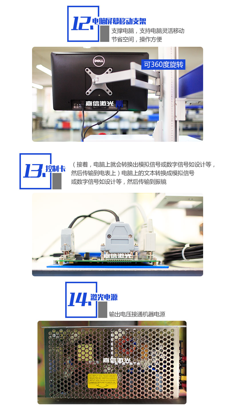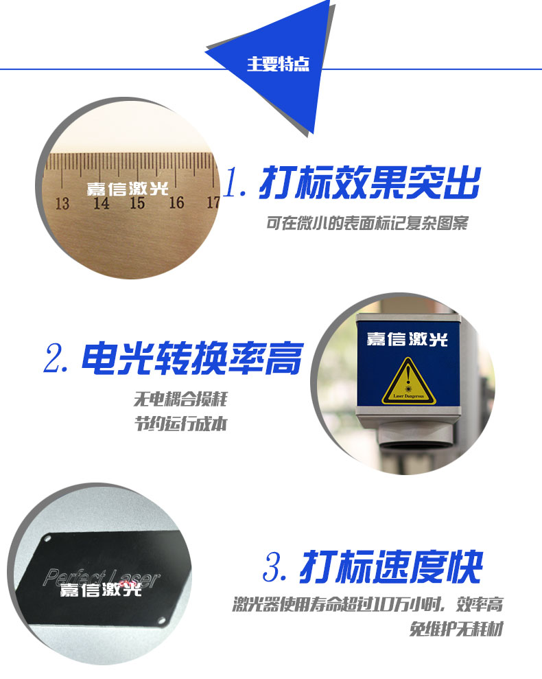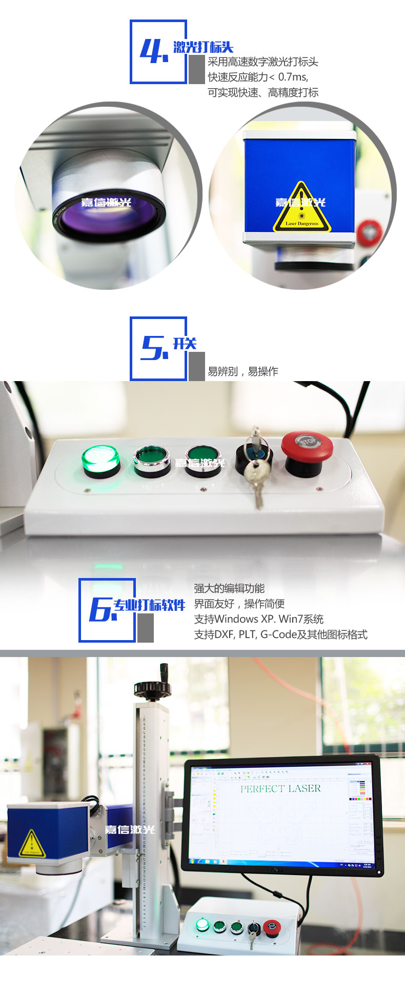 2. 進口激光源:德國IPG 20W激光器,激光光束穩(wěn)定,打標(biāo)線條流暢精細;