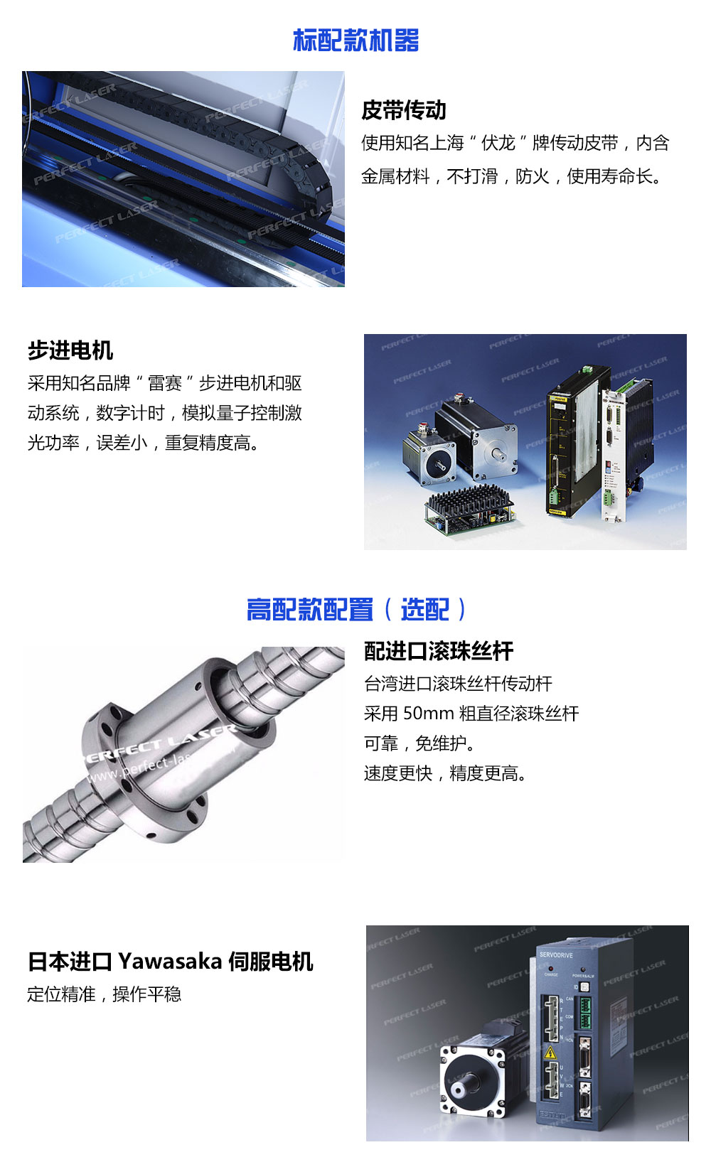 1.標準機器采用皮帶傳動,及中國雷塞步進電機及驅(qū)動系統(tǒng);
