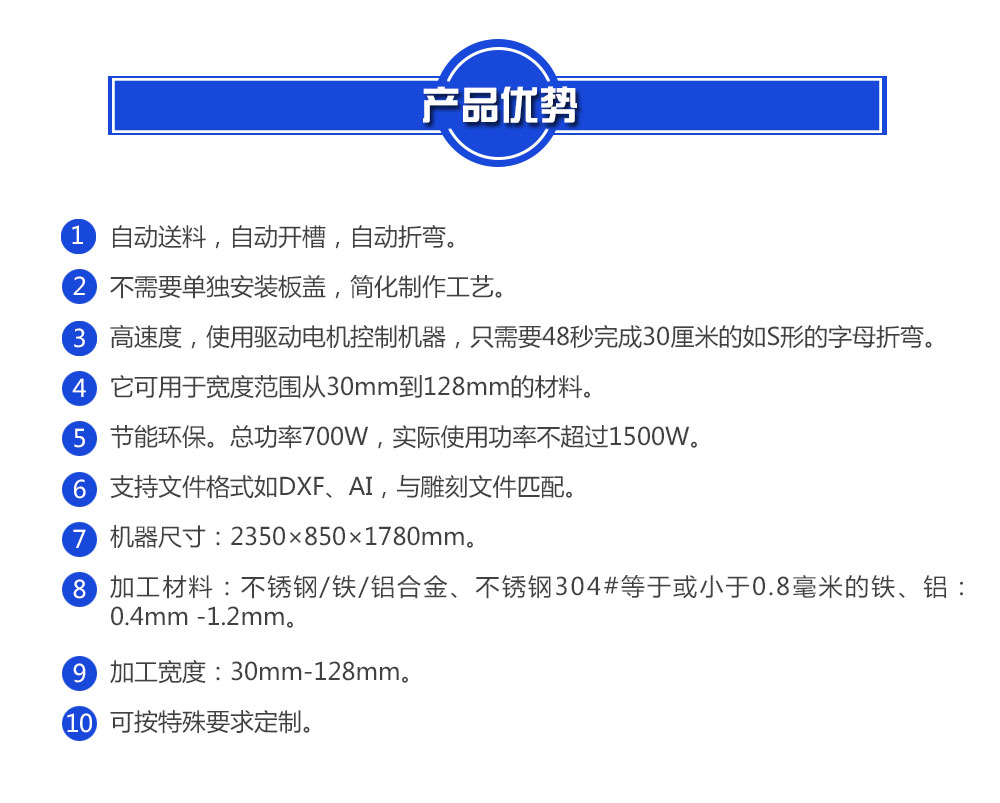 3)操作便捷:該包邊字折彎機為全自動設備,自動上料,自動開槽,自動折彎;