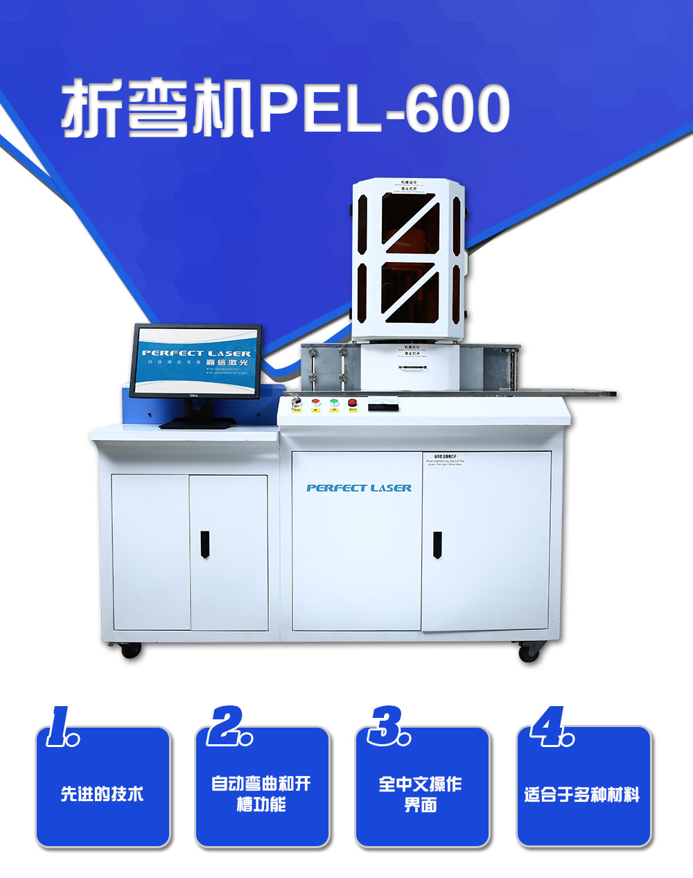 PEL-600A型全自動包邊字折彎機基于武漢嘉信激光有限公司PEL-600成熟平臺制造生產,設備結構精密,經濟適用,是各種鋁型材料(彩鋁平板、單包邊、雙包邊卷邊條等)加工的優先選擇。