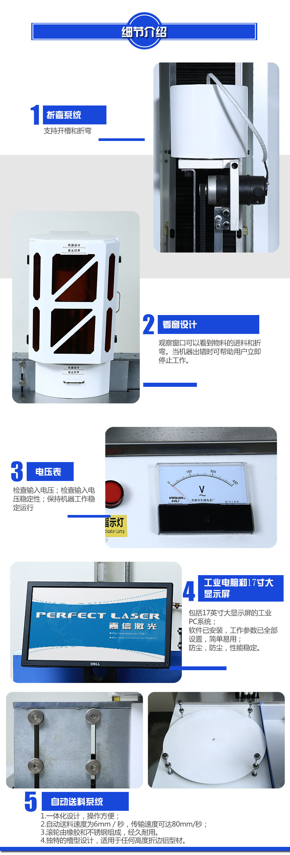 2)加工精度高:包邊字折彎機的 送料精度可達到0.01毫米,折彎精度可達0.4°;